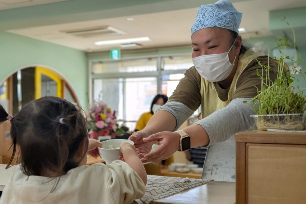 鳩ぽっぽ保育園は日本の伝統・文化を大切にし、行事や日々の食育を通して子どもたちがそれらを楽しみながら知ることができるような保育を行っています。年中行事では、行事に合わせた歌や雰囲気、装飾だけでなく行事食も取り入れ、食と日本の行事との繋がりを感じられるようにしています。食育においては他にも、食材の栽培と収穫・味噌づくりや餃子の皮づくりなどのクッキング・自分たちが手掛けたものを食べてもらうという経験など、幅広く食育を行っています。その影響もあってか、食材への興味や愛着が芽生え、苦手だった食べ物を食べられるようになった子も多くいます。最近では、“色々な国の料理”と題し、毎月外国の料理を子どもたちが食べやすいように工夫した給食が出ることで、興味が諸外国の食→文化などにも広がっていく様子が見られたりしています。在園児・職員はもちろん、卒園児や保護者の方からも“鳩ぽっぽ保育園の給食は美味しいんだよね~”“保育園では野菜が食べられているようで助かっています”などの声が多く上がる給食は、鳩ぽっぽ保育園の自慢です!