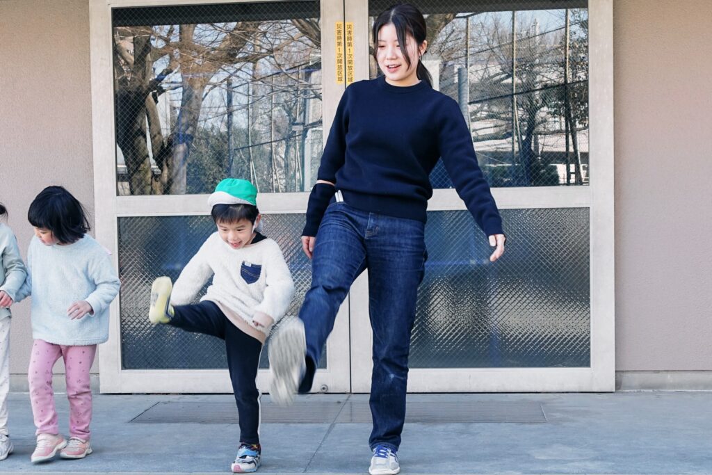 職員一人ひとりが“いきいき”と保育を楽しんで働く姿があり、特に人間関係の良さは園で誇れることの一つ。その日の子どもたちのエピソードや成長を話し、困ったことがある時は相談できる関係性を築いています。大人がやってみたいことを「いいね!」「どうしたら出来るか一緒に考えてみよう」と受け止められ、その挑戦が自分の自信となるとともに、先輩も一緒に考えることを通して、みんなが成長出来る環境です。また、分園・本園一つの園として子どもの成長を見守り続けていく為に、両園職員同士、定期的に対話を重ねる機会を設け、子どもたちを複数の視点から見て多面的に捉え、チームとして支え合いながら子ども理解に努めています。